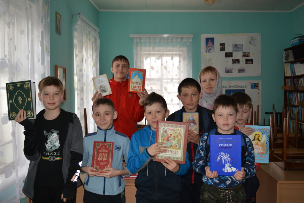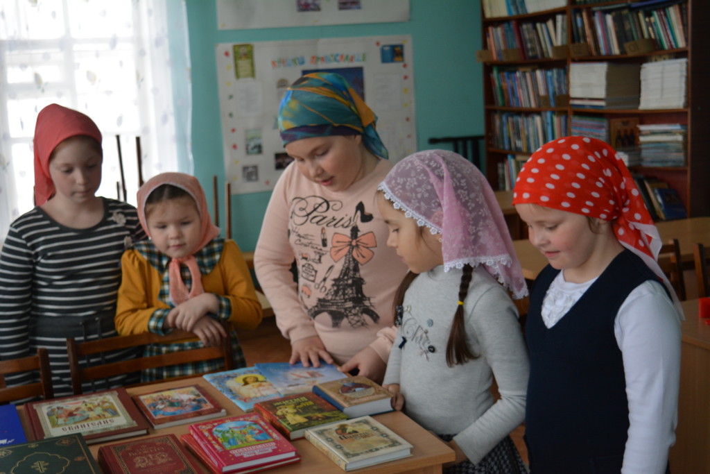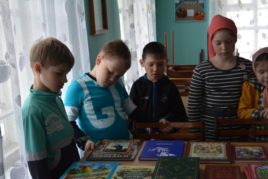 Обзорно представив детям все выставленные книги, более глубокое внимание было уделено: «О Пасхе Христовой» Н.Г.Куцаевой. В сборник вошли литературные произведения для детей младшего и среднего школьного возраста о самом главном и радостном христианском празднике- Светлом Христовом Воскресении, Святой Пасхе; «Светлая заутреня» сборник прозы Василия Никифорова-Волгина, в которых он удивительно тепло и нежно вспоминает своё детство, рисует мир ребёнка, приобщающегося к Православию; «Жития святых для детей» протоиерея Виктора Ильенко, в книге собраны жития наиболее известных святых- чудесных подвижников Христовой веры, что сделает мир христианства для ребенка близким и родным.