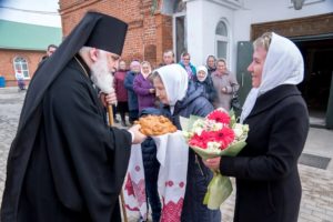 В завершении благочинный Алнашского округа, настоятель храма Святой Троицы протоиерей Михаил Иванов поблагодарил правящего архиерея за совершенное богослужение, поздравил его со Светлым Христовым Воскресением и подарил владыке букет цветов и Иверскую икону Божией Матери, праздник которой отмечается в этот день.