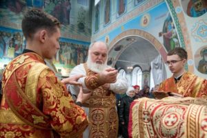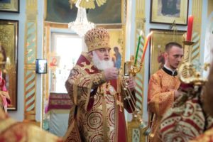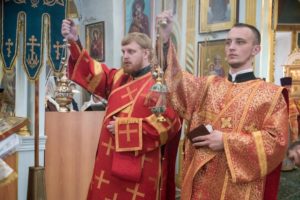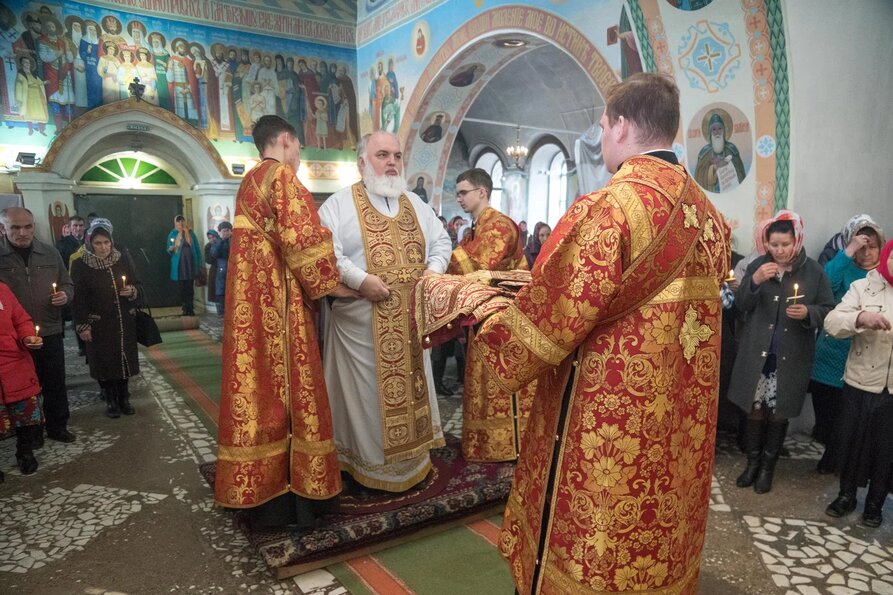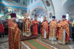 Его Преосвященству сослужили: секретарь Сарапульской епархии протоиерей Вячеслав Остроумов, благочинный Алнашского округа, настоятель храма Святой Троицы протоиерей Михаил Иванов, духовенство епархии.