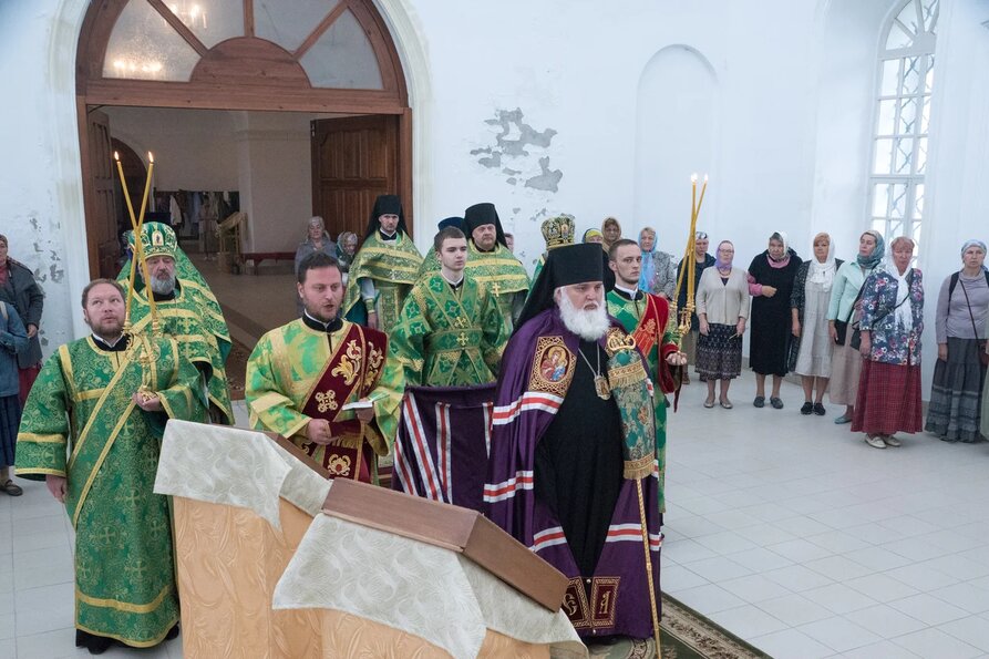 7 июля 2019 года, неделю 3-ю по Пятидесятнице, Рождество честного славного Пророка, Предтечи и Крестителя Господня Иоанна, день памяти преподобного Антония Дымского, Собор святых Удмуртской земли, епископ Сарапульский и Можгинский Антоний совершил Божественную литургию в Богоявленском храме села Нечкино.Его Преосвященству сослужили:благочинный Алнашского округа протоиерей Михаил Иванов и духовенство епархии.