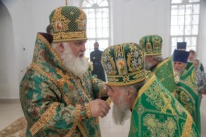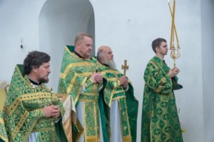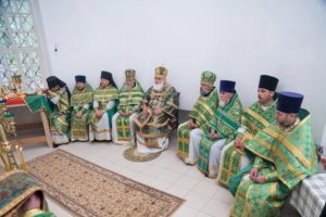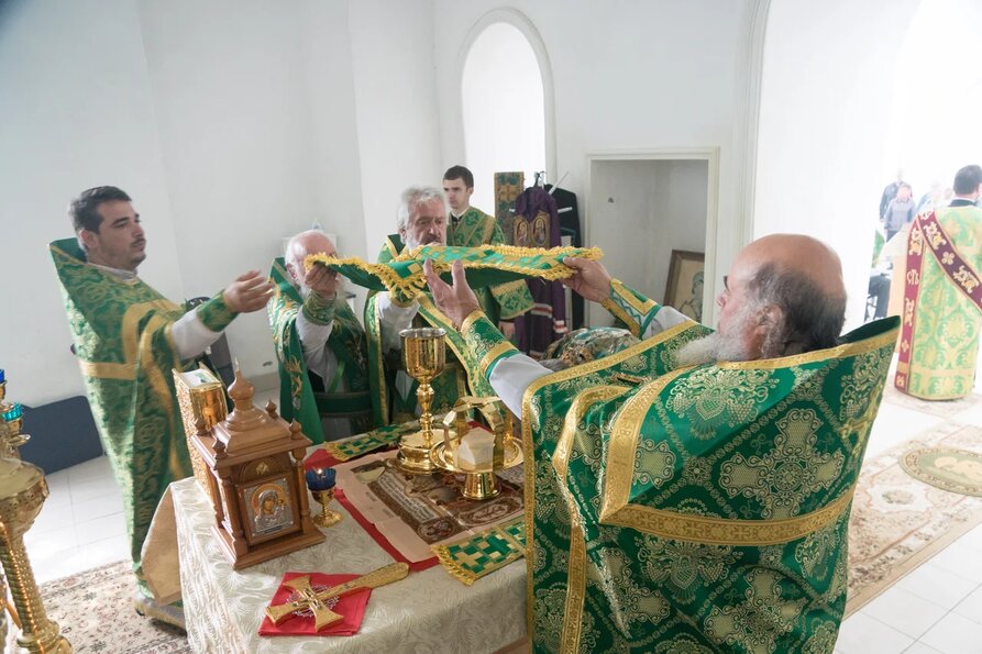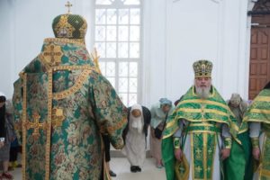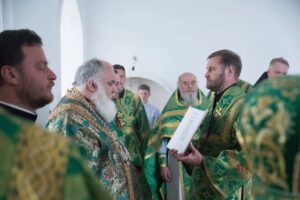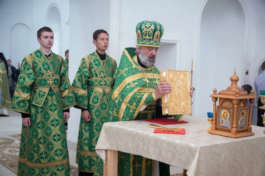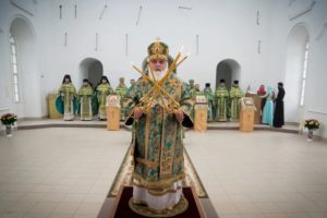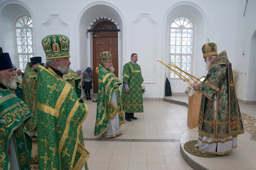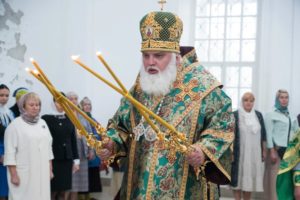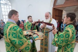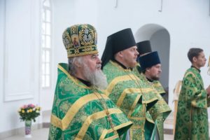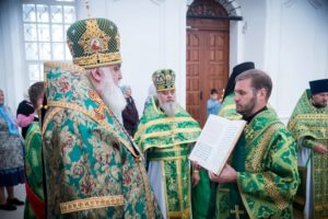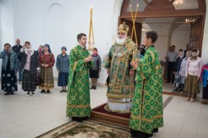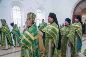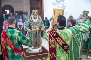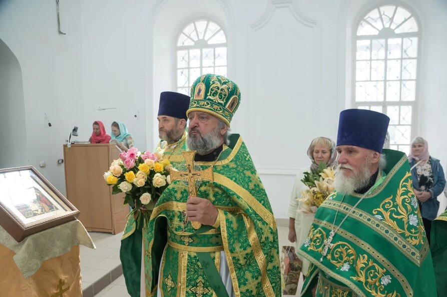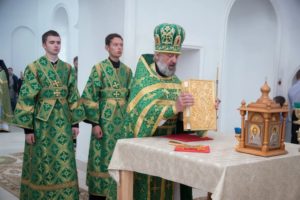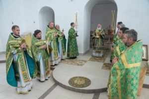 В завершении богослужения духовенство и верующие поздравили владыку с днем тезоименитства.