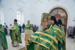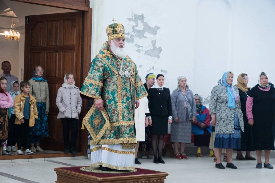 По окончании Литургии правящий архиерей в сослужении духовенства совершил молебен перед иконой своего небесного покровителя преподобного Антония Дымского, после чего обратился к верующим с архипастырским словом.