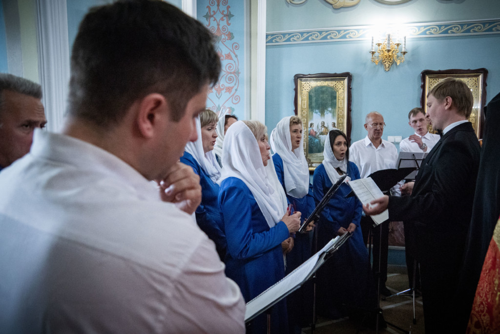 Божественную литургию совершили митрополит Ижевский и Удмуртский Викторин,епископ Сарапульский и Можгинский Антоний и епископ Глазовский и Игринский Виктор.Архипастырям сослужил собор духовенства Удмуртской митрополии.